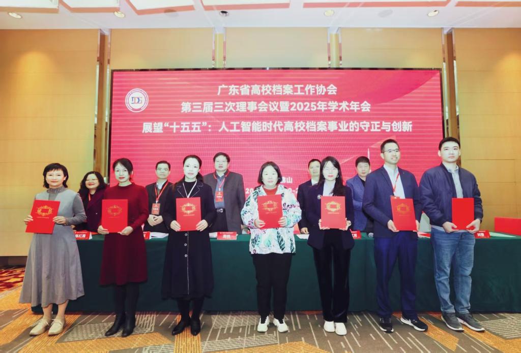 2025年11月21日,广东省高校档案工作协会第三届三次理事会议暨2025年学术年会在佛山召开。会上公布了协会2025年学术征文获奖结果,我校档案馆许桂芳馆长的论文《数智化转型背景下高校档案数字治理创新路径研究》荣获广东省高校档案工作协会2025年征文一等奖。